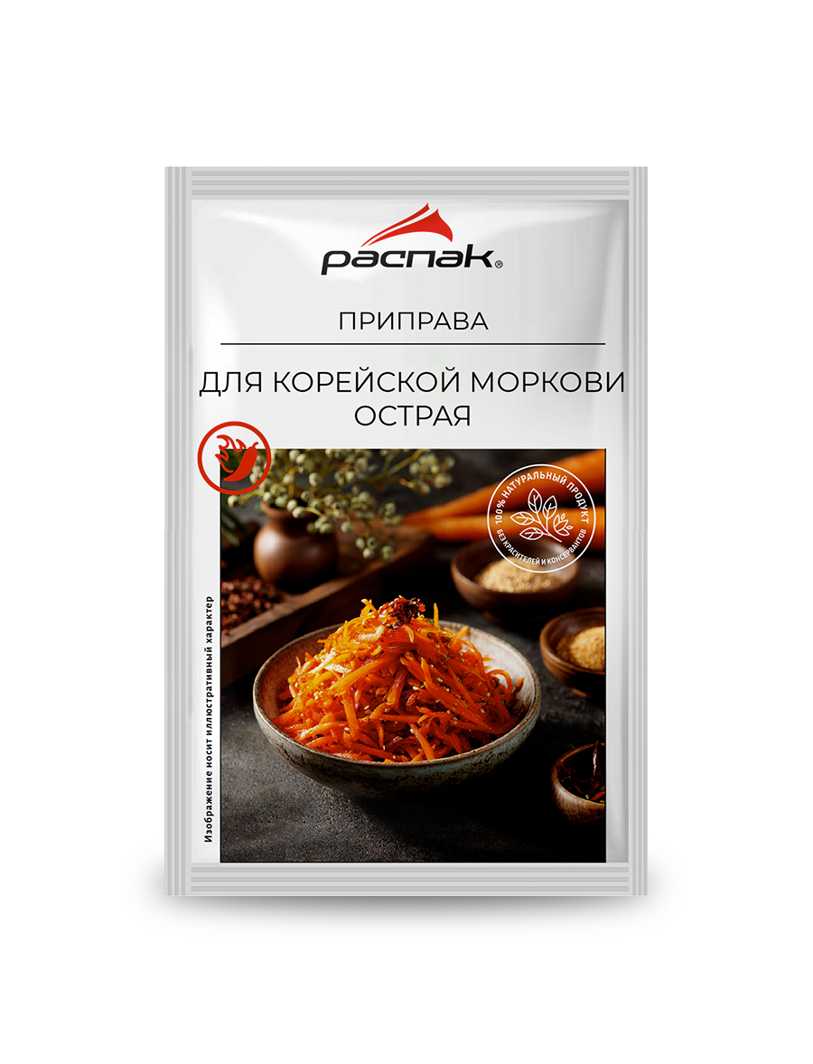 Приправа для корейской моркови острая — пряная и ароматная смесь с выраженной остротой, чесночными нотками и лёгким уксусным оттенком. Идеально подходит для быстрого приготовления пикантной закуски в домашних условиях. Придаёт моркови насыщенный вкус и характерную азиатскую остроту.