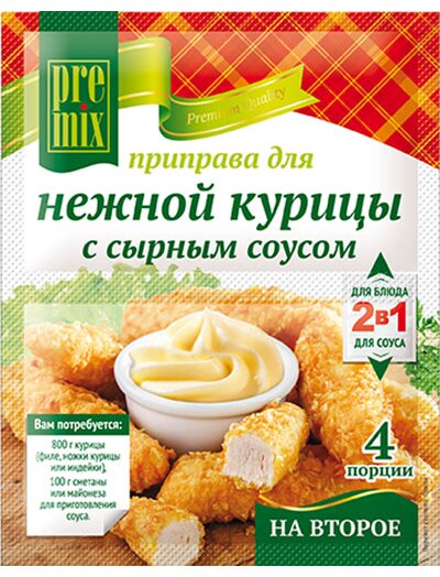 Приправа для нежной курицы с сырным соусом PreMix – приправа 2 в одном! Изысканное сочетание кориандра, чеснока, куркумы для мяса, и отдельные специи для соуса. Они соединят ингредиенты, придадут насыщенный, богатый вкус и пряный аромат блюду! Приправа используется при приготовлении курицы, утки, индейки. Все гениальное просто!