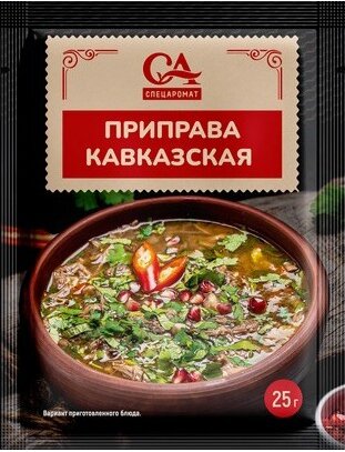 Приправа состоит из ароматных трав и специй, характерных блюдам кавказской кухни. Пряная и в меру острая, с нотками чеснока, она идеально подойдёт не только для традиционных блюд кавказской кухни, но и придаст пикантный пряный вкус любым вашим блюдам из мяса, птицы и овощей. Добавляйте приправу по вкусу незадолго до готовности блюда при тушении, в мясной фарш при замешивании или используйте её для натирания мяса перед жаркой и запеканием. Учитывайте, что в составе приправы содержится соль.