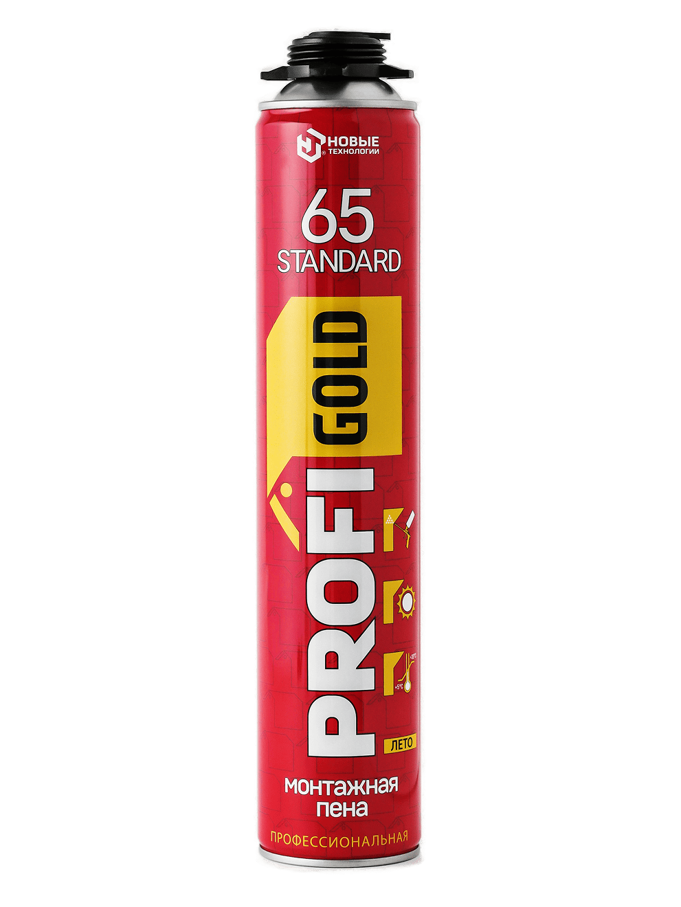 PROFIGOLD 65 STANDARD ЛЕТО высококачественная однокомпонентная полиуретановая пена в аэрозольной упаковке для профессионального использования с монтажным пистолетом. Затвердевает под воздействием атмосферной влаги.Температура окружающей среды: +5 °С +35 °С