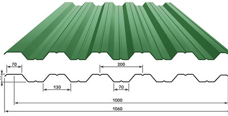 Профнастил НС35 - материал, широко применяемый при устройстве кровельных систем и разнообразных ограждений. Маркировка НС говорит о том, что данный профилированный лист универсален и может применяться как Несущий так и Стеновой. Основное и существенное отличие профлиста НС35 от аналогов – это наличие в гофрах ребра жесткости, что дает профнастилу НС35х1000 более высокие прочностные характеристики. Толщина профлиста НС 35 – 0,45-0,8 мм