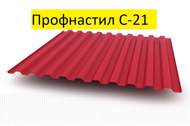 Профнастил С-21 используется для постоянных сооружений, для временных быстровозводимых помещений (павильонов, складов, гаражей), для декоративных объектов, как облицовочный материал (для стен, потолков, заборов).