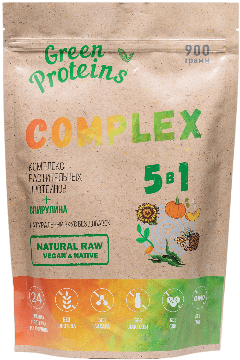 Комплексный протеин - это многокомпнентная смесь конопляного, подсолнечного, тыквенного, кедрового протеинов и спирулины.