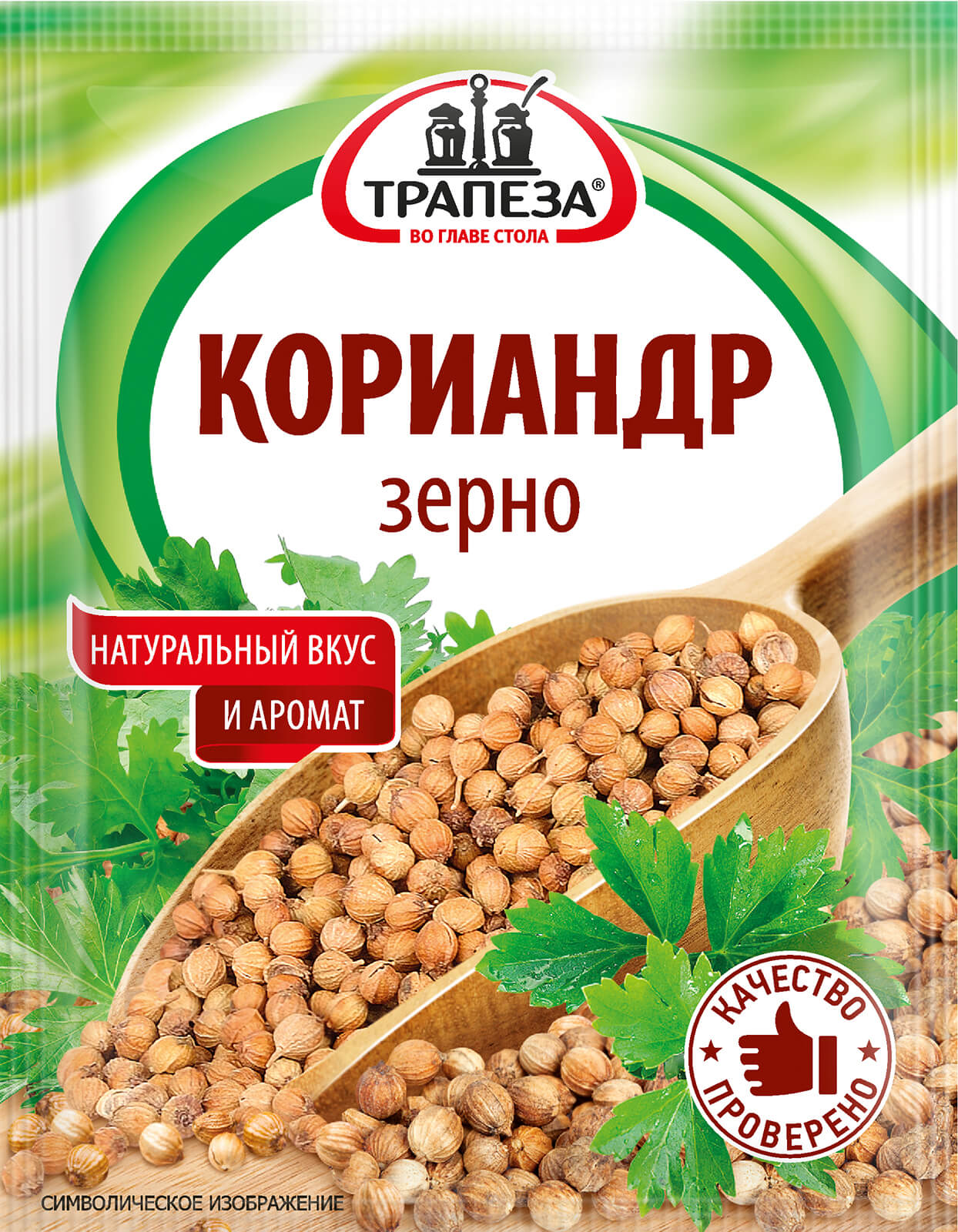 - в кулинарии: Обязательный компонент большинства смесей пряностей. Используют кориандр в супах, мясных блюдах, вводят в состав различных смесей, используют при приготовлении ликеров и настоек, добавляют в вино. Хлебобулочные, кондитерские изделия. Тушеное мясо и дичь. Блюда с горохом, фасолью, капустой, свеклой.