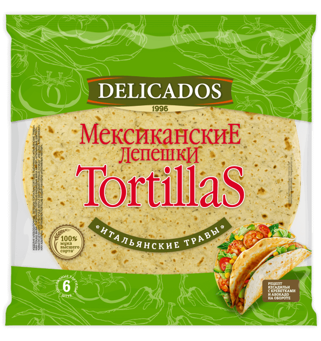 Пшеничные тортильи delicados итальянские травы