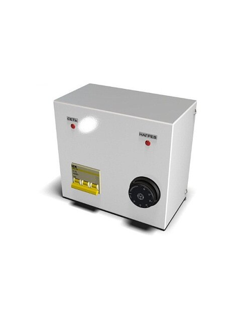 Пульт управления электроводонагревателем ПУЭВН 9/12 предназначен для управления электроводонагревателями мощностью до 15 кВт. Питание электронагревателей 3-60 КВт с пультом управления производится от трехфазной сети 380 В.Срок службы пульта управления составляет 10 лет с момента ввода в эксплуатацию.Пульт управления состоит из шкафа с размещенной в нем аппаратурой управления, индикации и клемных колодок для подключения к четырехпроводной линии с глухозаземленным нулевым проводом и электронагревателем.К аппаратуре относится:датчик-реле температуры с термочувствительным баллоном, обеспечивающий автоматическое поддержание заданной температуры воды в системе водяного отопления или воздуха в помещении;магнитный пускатель, обеспечивающий включение- отключение нагревательных элементов электроводонагревателя, по команде датчика-реле температуры.Блок индикации служит для сигнализации о наличии напряжения на электронагревателе. Пульт может комплектоваться тепловым датчиком аварийного отключения, который устанавливается вне пульта на водогрейный котел, в месте, имеющем температуру на поверхности около 70 градусов С в аварийном режиме.