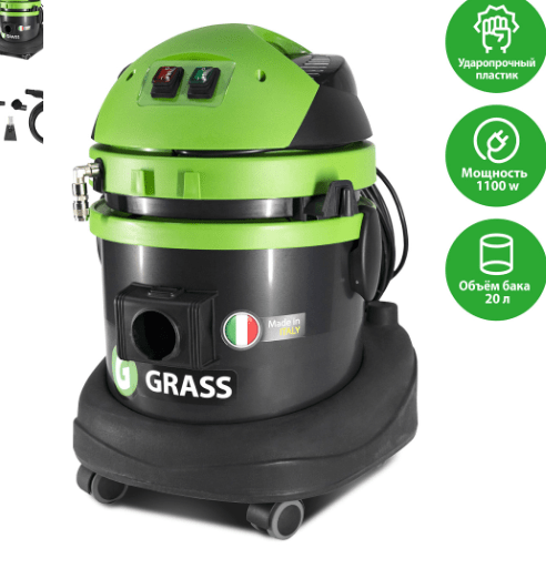Профессиональный пылесос для химчистки с 20-ти литровым баком из ударопрочного полипропилена для моющего раствора.