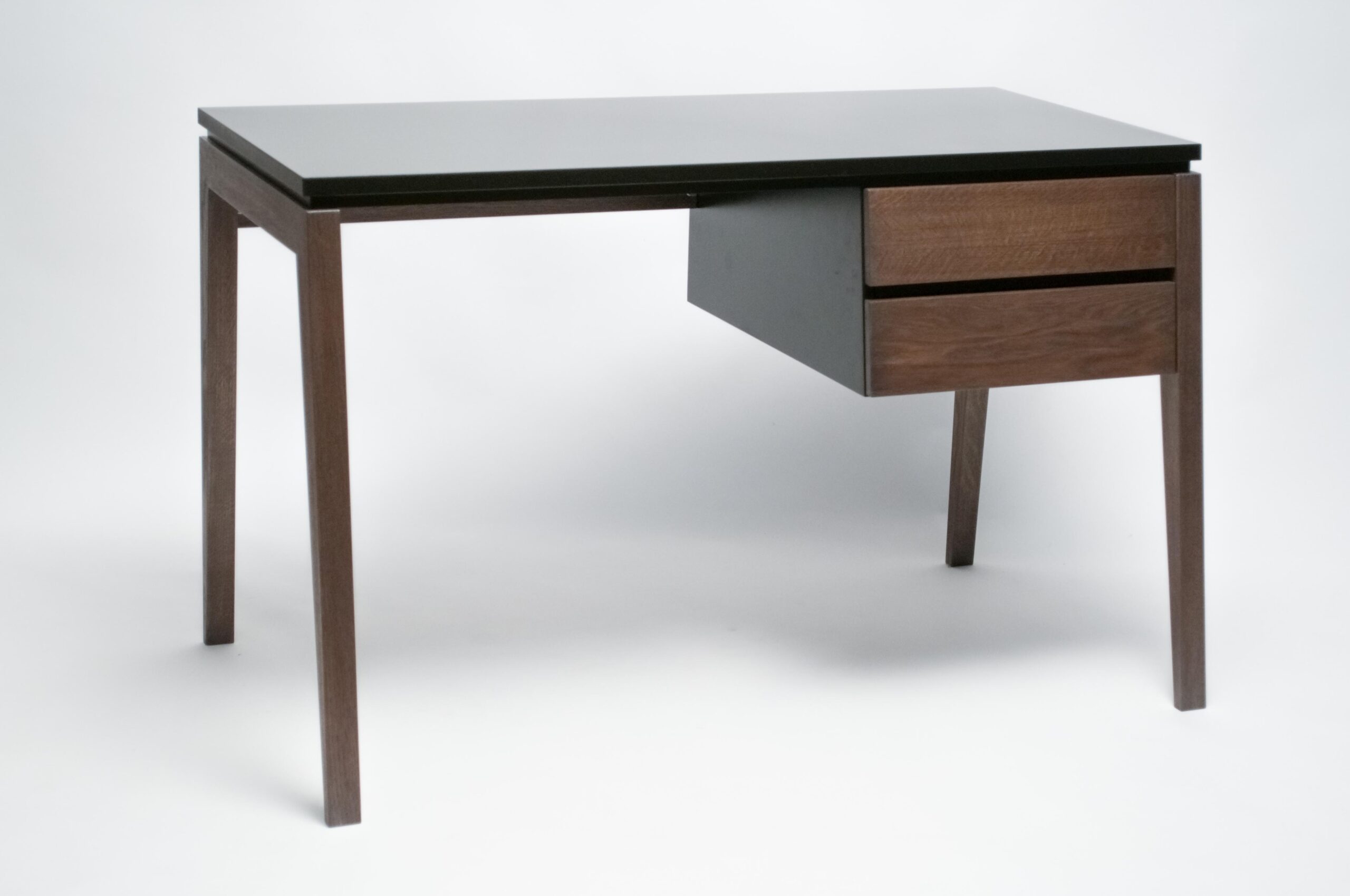 Страна: Россия Дизайнер: Андрей Пушкарёв Артикул 153 Рабочий стол Bureau для руководителей и предпринимателей. Для работы дома и в офисе. Это функциональный предмет, подходящий для помещений, оформленных в современном стиле. Благодаря продуманным размерам столешницы, он выполнит роль полноценного офисного стола, стола для учебы или работы за ноутбуком. Фасады с обеих сторон стола рабочего стола Bureau позволяют располагать его по центру помещения. Внешний вид стола сдержанный и солидный, благодаря темной отделке дерева и черному цвету столешницы. Ящики оснащены скрытыми направляющими полного выдвижения с доводчиками. Рабочий стол Bureau доступен: – в 9 вариантах отделки и 11 цветах эмали. Размеры, см. – 120хh75x65,5. Размер столешницы, см. – 120×55. Материалы: – ножки, фасады — массив дерева твердых пород, – столешница — МДФ. Отделка: – ножки, фасады — тонировка старинный орех (516), – столешница — базовая эмаль RAL 9017 (черная)