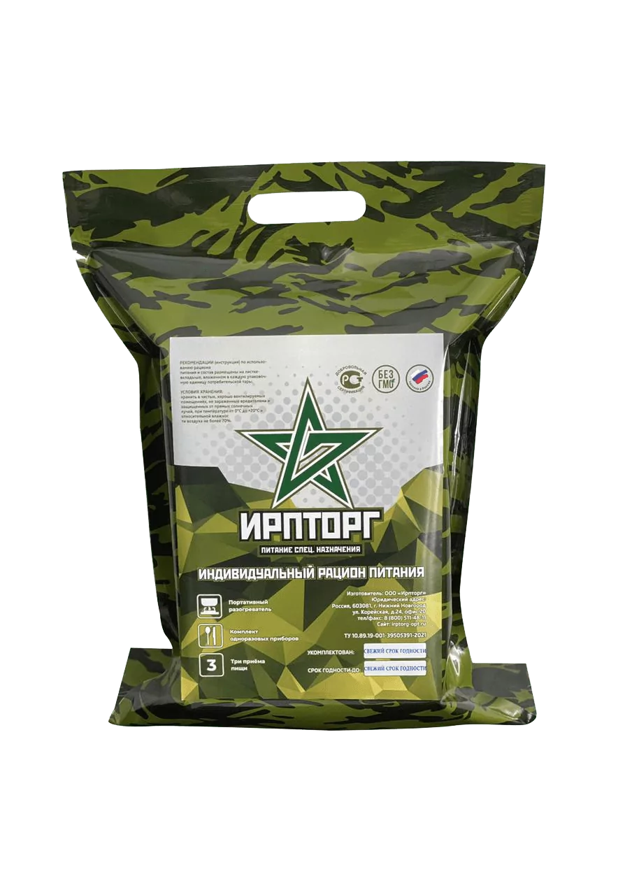 Рацион питания для ГРУ ( спецназ ) 1.7 кг представляет специально разработанный рацион питания для ГРУ (Спецназа) — идеальное решение для высокоэффективных спецопераций. Этот компактный набор на 1.7 кг сухпайки обеспечит ваших военных сил всем необходимым для поддержания высокой работоспособности и выносливости в самых экстремальных условиях.Высокоэнергетические сухие рационы питания. Компактные порции с разнообразным ассортиментом вкусов. Удобные упаковки, легко открывающиеся даже в условиях стресса