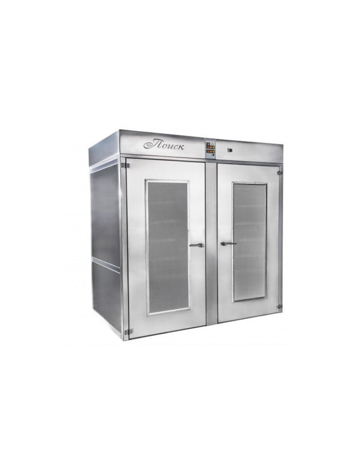 Расстойный шкаф «ПОИСК» универсал предназначен для окончательной расстойки тестовых заготовок на стеллажных контейнерах.Расстойные шкафы «ПОИСК» Универсал — это внешнее расположение климатической установки, подача теплого влажного воздуха по закрытым коробам в пол камеры. Высокая надежность климатической установки и отличная равномерность ферментации по всему объему камеры. Материал изготовления – нержавеющая сталь.Шкаф расстойный «ПОИСК» Универсал состоит из:каркас;электровентилятор;генератор тепла и пара;короб подачи воздуха;силовой блок управления;пульт управления;двери закрываются при помощи кремальеров.