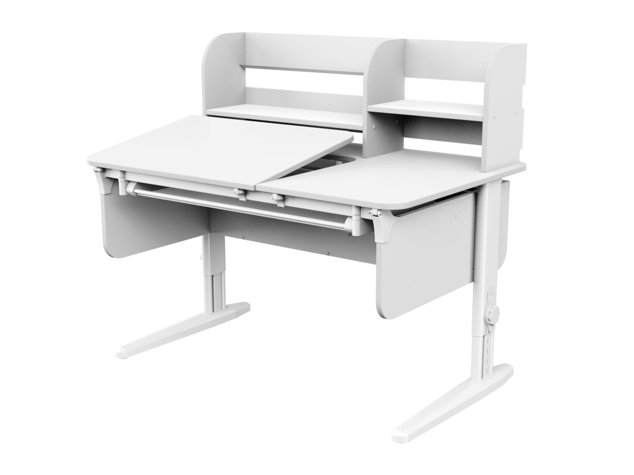 Модель с двумя эргономичными столешницами: одна регулируется по углу наклона, вторая стационарная. • Стол с вместительной надстройкой для книг с металлическим органайзером-подставкой • Расширенная L-образная столешница с просторной зоной для учебных принадлежностей • Подъёмная столешница дополнена газлифтом для плавного опускания • Большой лоток для канцтоваров и клавиатуры на всю длину стола отверстие для кабеля • Скруглённые углы для снижения травматичности • Угол наклона рабочей поверхности регулируется от 0 до 30° (9 ступеней). • Высота парты регулируется под рост детей от 115 до 205 см. • Модель устойчива на неровном полу за счёт регулируемых опор. • Крючок для рюкзака удобно размещён сбоку парты. • Растущая парта в комплекте с растущим стулом сохранит правильную осанку и зрение вашего ребёнка. • Срок эксплуатации 10-15 лет.