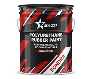 Резиновая краска сверхпрочная KONDRA ® – новейшая разработка компании ЛКМ СССР, уже успешно опробованная в эксплуатации. Специальная серия резиновой краски, из сверхпрочного полиуретанового состава , состоящая полностью из импортного сырья последнего поколения. Резиновая краска KONDRA дополнена различными присадками, которые совсем недавно выпушены на рынок ведущими мировыми поставщиками сырья . В данной серии эластичной, прочнейшей краски для бетона, плитки, металла, дерева (и всех его различных вариантов, таких как – дсп, фанера, осб, цсп и т.п .) мы исключили многие недостатки полиуретановых составов и в нужном количестве доведены до максимума такие характеристики, как: светостойкость, адгезия, прочность, эластичность, а также возможность нанесения при отрицательных температурах до – 55 Градусов Цельсия.