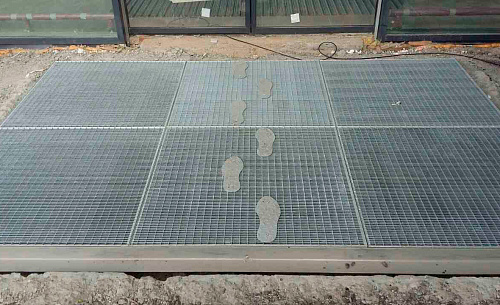 Рифленая металлическая накладка "След" представляет собой металлическую пластину, предназначенную для установки на стальные оцинкованные решетки. Рифленая поверхность изделия обеспечивает противоскользящие свойства и предотвращает попадание каблука в ячейки решетки. Накладки снабжены крепежами, что позволяет устанавливать и снимать их для обслуживания. Основные размеры: толщина - 3 мм, само изделие - 310*110 мм., вес - 640 г.