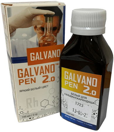 Раствор GALVANO для гальванокарандаша представляет собой электролитический гальванический раствор для нанесения белого блестящего покрытия на различные металлы и их сплавы: золото, серебро, никель и т.п., толщина слоя - до 1 мкм.