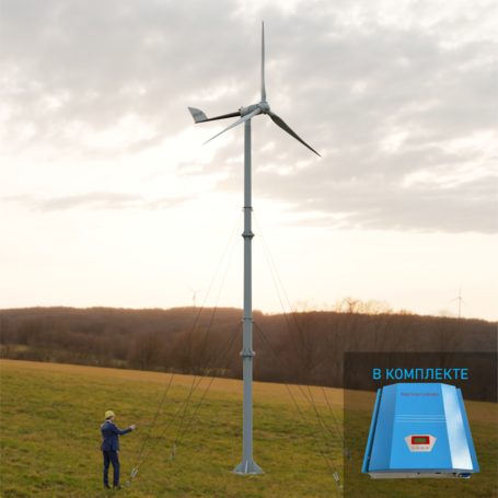 Описание ROSVETRO LW-5K Контроллер PWM поставляется вместе с ветрогенератором. ROSVETRO LW-5K это горизонтальный ветрогенератор номинальной мощностью 5000 Вт с удлиннеными лопастями. Рекомендуемая скорость ветра для установки данной модели от 3 м/с. Именно трехлопастной ветрогенератор с достаточной площадью "хвоста" быстрее ловит меняющиеся порывы ветра без существенной потери оборотов ротора. Варианты подключения ветрогенератора: ВЭУ - Контроллер - АКБ - Инвертор 220/380В с подмешиванием - Потребитель