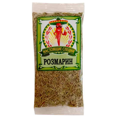 Розмарин 25 г сушёная приправа, которая может быть в форме листочков или измельчённого продукта.Имеет тёплый, немножко горьковатый и вяжущий вкус с сосновым оттенком.Даёт аромат для супов, соусов, рагу, жареного мяса, салатов.Широко применяется в итальянской кухне: пицца, паста, лазанья.Добавлять можно в любой момент готовки — приправа не поддаётся тепловой обработке и не теряет своих свойств.