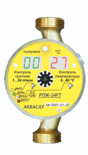 РПЖ–24FT Электронное реле протока жидкости - это надежный контроль и защита трубопроводных систем. Такое оборудование предназначено для контроля величины протока жидкости и его температуры для автоматизации работы промышленных систем охлаждения технологического оборудования или в системах, где необходимо контролировать величину минимального протока и максимальной температуры жидкости одновременно. К особенностям таких устройств относится:бесконтактный электронный принцип действия обеспечивает высокую надежность, сигнализирует об уменьшении протока жидкости или превышении температуры, что обеспечивает защиту оборудования, стандартная резьба G3/4" для монтажа в линию, светодиодная индикация питания и состояния потока, установка минимального расхода и максимальной температуры.