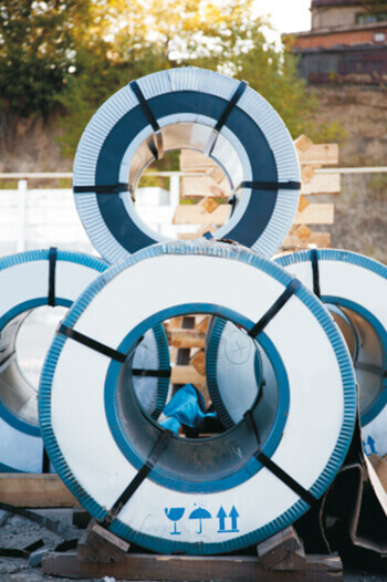 Рулонный металл - это вид листового металлопроката, который сворачивают в большие рулоны (бухты) для удобства транспортировки, хранения и дальнейшей обработки. Он изготавливается путем прокатки стали на станах, где металл нагревается и проходит через валы до получения требуемой толщины и формы. Структура металлического листа состоит из 5 слоев: защитный лак, полимерное покрытие, грунтовка, цинковое покрытие, стальной лист. Масса рулона - 5 т. Ширина рулона - 1050, 1250 мм. Толщина металла - от 0, 45 до 0,7 мм. Цвета металлического листа выбираются по каталогу RAL.
