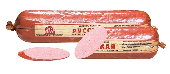 Вес батона: 00 ГОСТ Р 52196-2011 Состав: говядина, свинина, шпик, вода, соль, сахар, перец белый, кардамон, чеснок; стабилизаторы: комбинация из ди- и трифосфатов натрия (Е450 и Е451); антиокислитель: аскорбиновая кислота (Е300); фиксатор окраски: нитрит натрия (Е250). Срок хранения: 5 сут при t = 0С...+6С Артикул: 1119 Тип оболочки: (типОб )