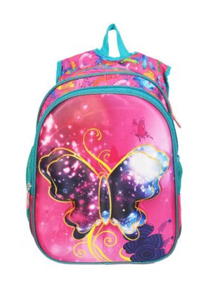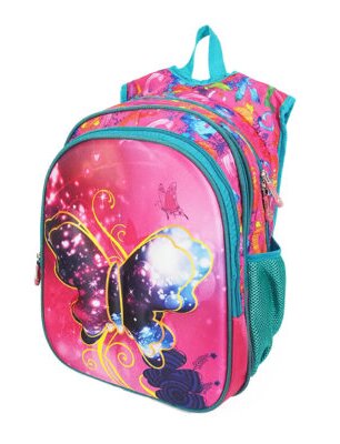 Рюкзак 877-024 роз бабочка для девочки. Материал — полиэстер. 2 отделения на молнии. Спереди формованный карман с 3D рисунком. 2 боковых кармана на сетке. Спинка уплотненная пропененная, лямки регулируемые в виде майки, пропененные. Петелька для вешалки.
