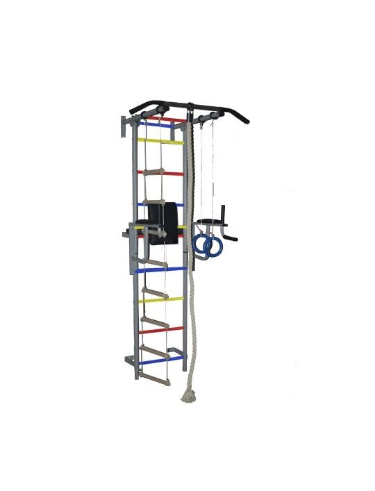 Спорткомплекс представляет собой сборно-разборную конструкцию из металлических труб, d=38мм, покрытых порошковой краской и перекладин из хромированной трубы или металлической трубы с ПВХ покрытием d=25мм с толщиной стенок 1,5мм. Высота комплекса в собранном виде- 2,2м. Площадь, занимаемая комплексом в собранном виде, при проекции на пол, составляет 0,95*0,65м. Длина перекладины турника с широким хватом - 1м. Высота подлокотников над полом - 1,3м, Расстояние от спинки до упорных ручек брусьев -0,45м. Расстояние от стены до металлической лестницы -240мм. Максимальная нагрузка на комплекс - 100 кг. Отличительной особенностью комплекса являются Съемные брусья для пресса с мягкими элементами спинки и подлокотников. Срок исполнения заказа - 3 дня. Тестовая партия от 3шт. отгружается по предоплате. Для постоянных заказчиков действуют отсрочки платежей. Товар отгружаем транспортными компаниями ПЭК, Деловые Линии, Кашелот, Байкал-сервис или компанией по согласованию с заказчиком. Товар отгружаем только в жесткой упаковке. Доставка до транспортной компании осуществляется бесплатно.