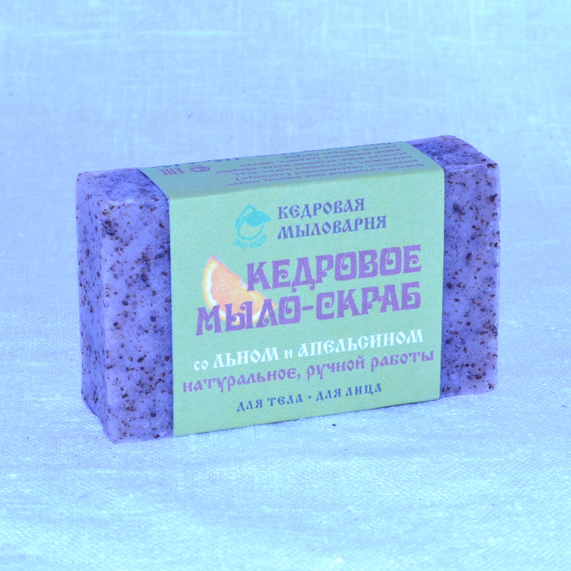 С льном и апельсином Кедровое мыло-скраб 115 гр.