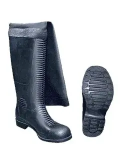 Верх сапог выполнен из гладкой черной нелакированной резины, внутренняя текстильная подкладка – из трикотажной хлопчатобумажной трубки ластичного переплетения.