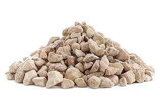 Известковый щебень крупной фракции – продукт дробления и просеивания осадочной горной породы. Такой материал ценится благодаря приемлемой стоимости, экологичному составу, выносливости, морозоустойчивости. Известковый наполнитель в составе пескобетонных смесей не имеет такой прочности, как, гранитная или гравийная щебенка, поэтому такое сырье чаще всего приобретают для заливки фундамента малой несущей способности, создания балластной подушки на дорогах с ограниченной нагрузкой, формирования насыпей ж/д полотна, трамвайных путей, автодорог и пешеходных переходов. Сыпучий материал белого, серого и желтоватого цвета имеет привлекательный вид, поэтому его часто покупают для зонирования территорий отдыха, декорирования клумб, газонов и детских площадок.