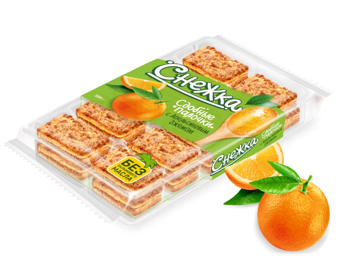 Сдобные палочки СНЕЖКА с апельсиновым джемом 308 г