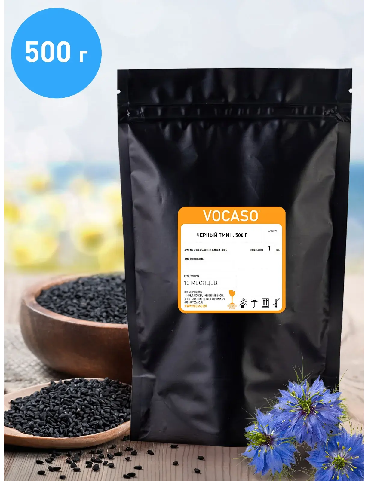 Семена черного тмина VOCASO поставляется в непрозрачных металлизированных пакетах Дой-Пак с Ziplock весом 500 г.