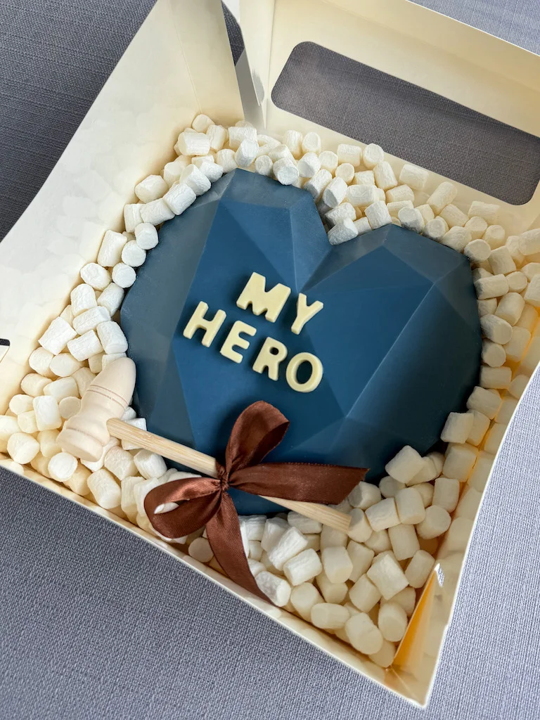 Красивый способ поздравить своего мужчину эффектно и вкусно - это шоколадная пиньята с надписью My Hero снаружи и маленьким сердцем с надписью You внутри.