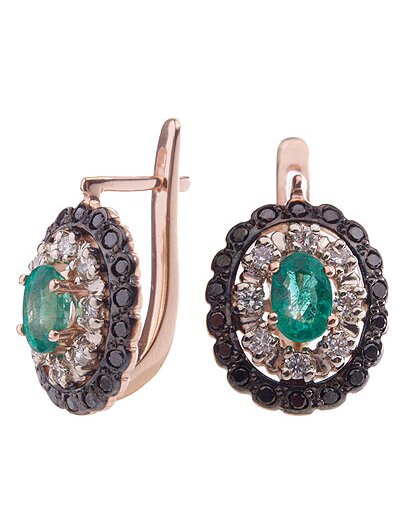Серьги из золота с изумрудами и бриллиантами - это стильное и статусное ювелирное изделие из золота 585 пробы с изумрудами и бриллиантами в викторианском стиле. Они предназначены для создания элегантного, роскошного образа, подходят для торжественных случаев и в качестве ценного подарка, символизируя душевную гармонию. Центральная вставка - изумруд 0,4 карат, обрамлен дорожками из белых и черных бриллиантов, что подчеркивает красоту центрального изумруда и создает непередаваемую игру света.