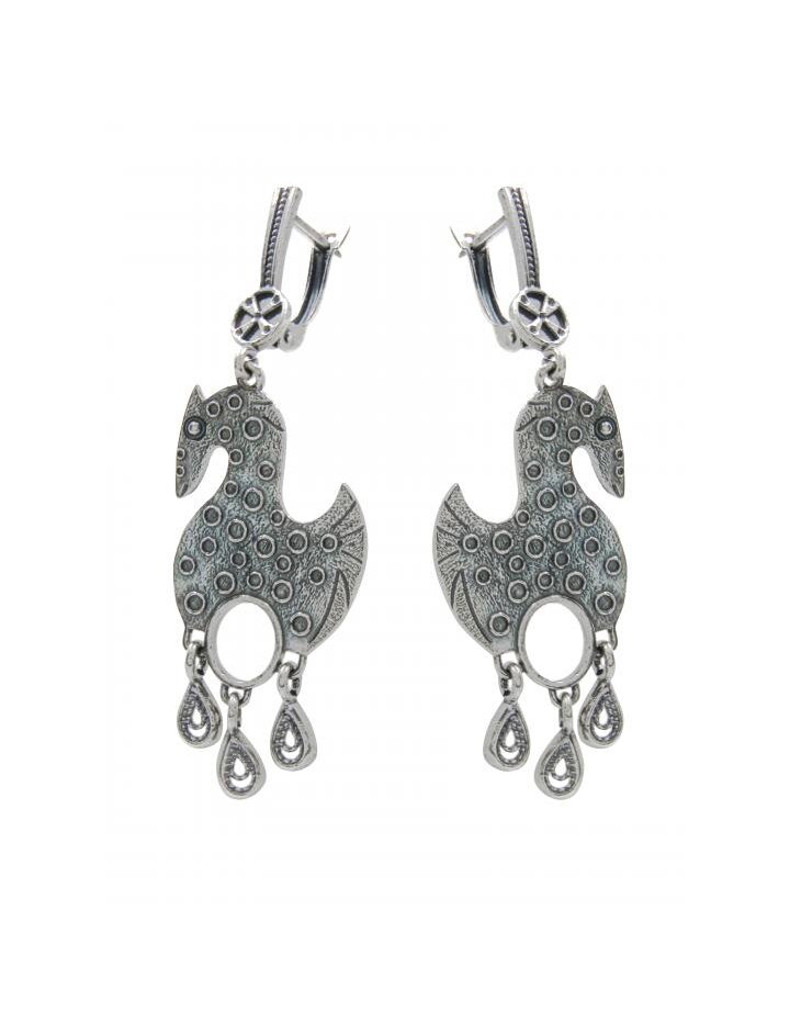 Серьги "Весна Священная" - это славянский оберег, выполненный в форме двухголовых коньков с шумящими подвесками, предназначенный для защиты от злых духов, сглаза и привлечения благополучия. Они олицетворяют мудрость, бег времени и способность защищать хозяйку на все стороны света. Серьги имеют красивый просечной металл - ювелирный сплав на основе латуни. Покрытие: натуральное покрытие серебром 999 пробы (от 9 до 12 мкм), золотом 875 пробы (0.45 мкм), родием (0.2 мкм).