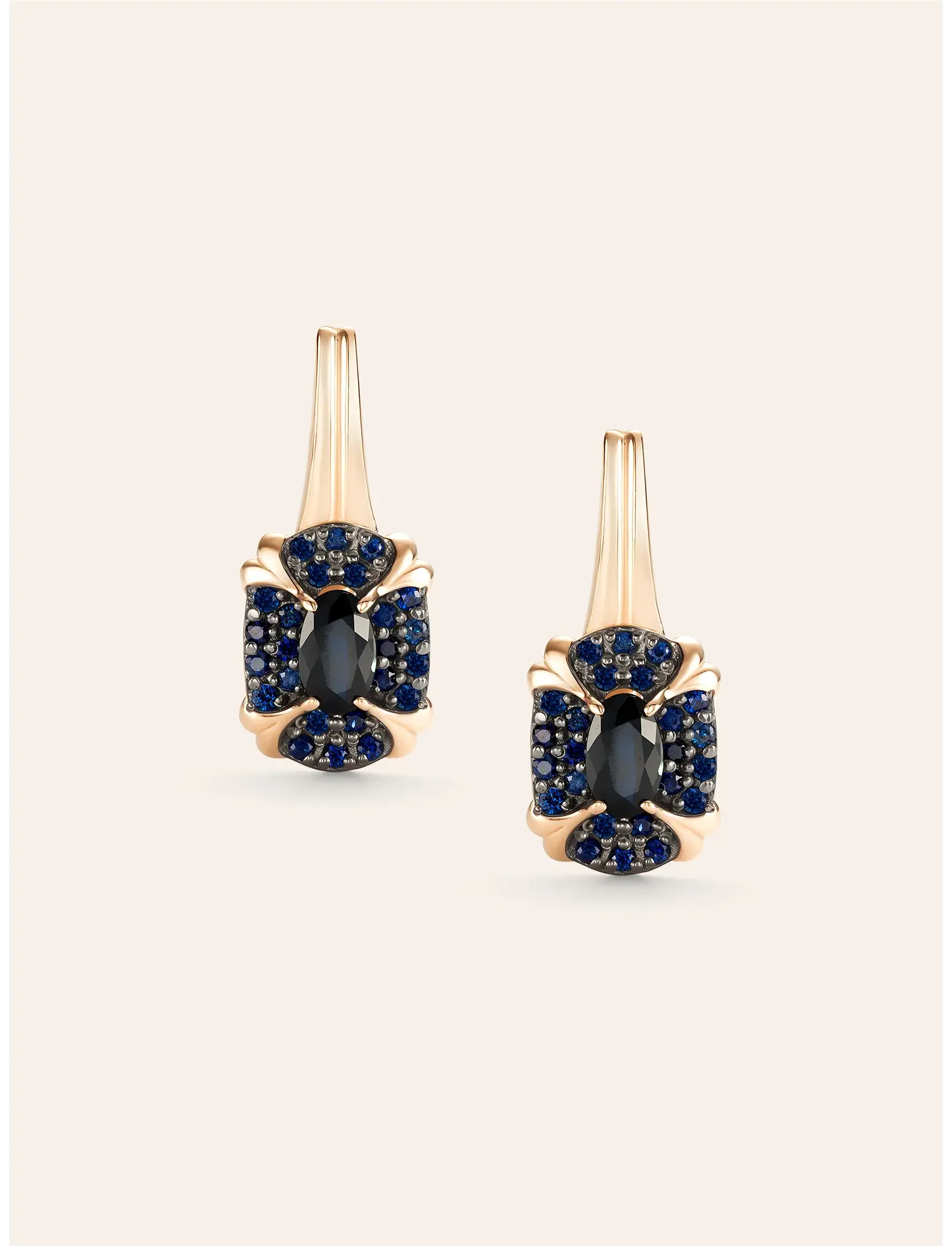 Серьги Magic Colors - это ювелирное изделие, сочетающее благородные металлы и яркие натуральные камни, вдохновленное цветочными узорами и природной гармонией. Они предназначены для создания стильных, акцентных образов, добавления цвета в повседневный или вечерний стиль и подчеркивания индивидуальности через игру света и оттенков. Яркие камни привлекают внимание и служат центральным элементом стиля. Серьги на английском замке из красного золота 585 пробы с сапфиром. Ширина изделия - 7.6 мм. Высота изделия - 17.2 м. Вставки - 2 Сапфир Овал 0,640 5х3 2/2, 48 Сапфир Круг 0,280 1,0 2/2. Вес - 3 гр.