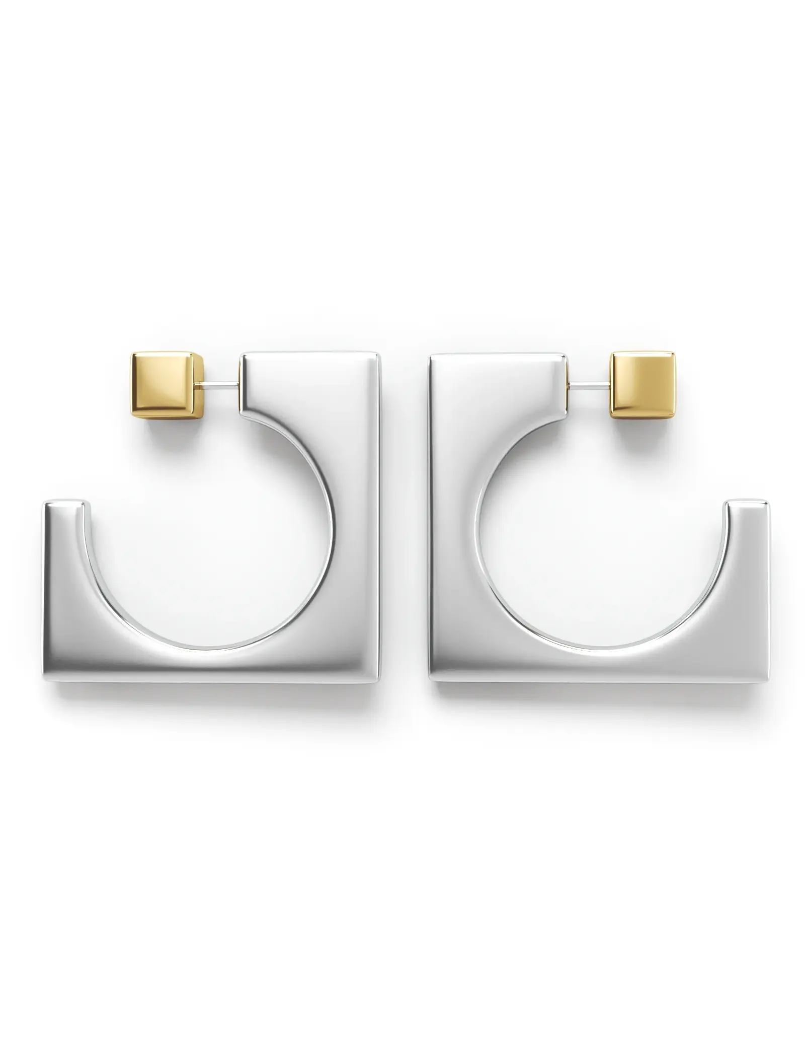 Серьги Nakagin - это дизайнерские биколорные украшения, вдохновленные капсульной башней Накагин в Токио. Они имеют минималистичную геометрическую форму, повторяющую знаменитые капсулы, и созданы для придания образу архитектурной выверенности и стильного акцента. Биколорные серьги Nakagin повторяют форму знаменитых капсул, из которых создана башня. Строгие линии подходят к деловому или городскому образу. Материал - нержавеющая сталь и позолота.