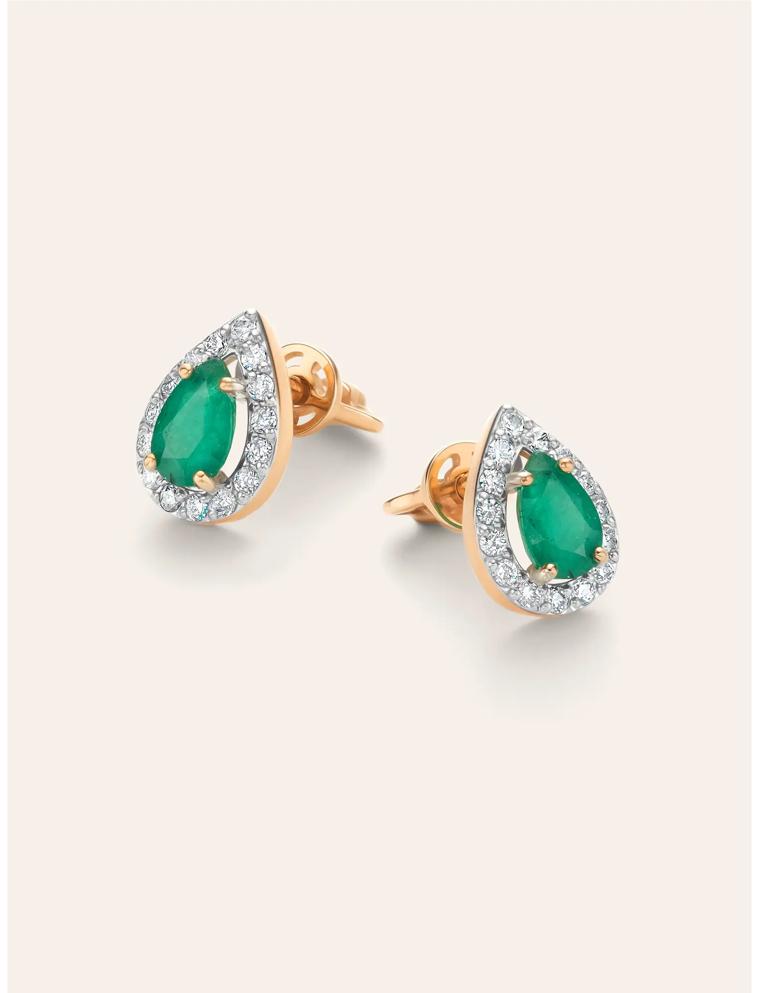 Серьги-пусеты Magic Colors - это лаконичное ювелирное изделие, состоящее из декоративной части, штифта и застежки, плотно фиксирующиеся на мочке уха. Они популярны благодаря универсальности, подходят к любому стилю одежды (от делового до вечернего) и отлично сочетаются с разными прическами. Пусеты подходят женщинам любого возраста и уместны в любой ситуации - в офисе, на учебе или торжественном мероприятии. Серьги-пусеты выполнены на винтовом замке из красного золота 585 пробы с изумрудами и бриллиантами. Ширина изделия - 7 мм. Высота изделия - 10 мм. Вставки - 2 Изумруд Груша 0,697 6х4 3/3, 30 Бриллиант Круг 57 0,220 120-200 4/5А. Вес - 2 гр.