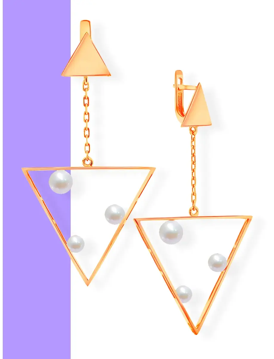 Серьги серебро с натуральным жемчугом - это серьги серебро 925 пробы с золочением, в форме треугольника с натуральным жемчугом. Свадебные длинные серьги с жемчугом в золочении - это идеальное украшение для особого дня, когда каждая деталь имеет значение. Великолепные серьги, созданные опытными мастерами, не только придают изящность и шарм, но и обладают великолепным качеством. Серьги треугольники и жемчужины добавляют нотку изысканности и роскоши, придавая серьгам особое очарование. Длина украшения - 5,5 см., ширина - 3 см.