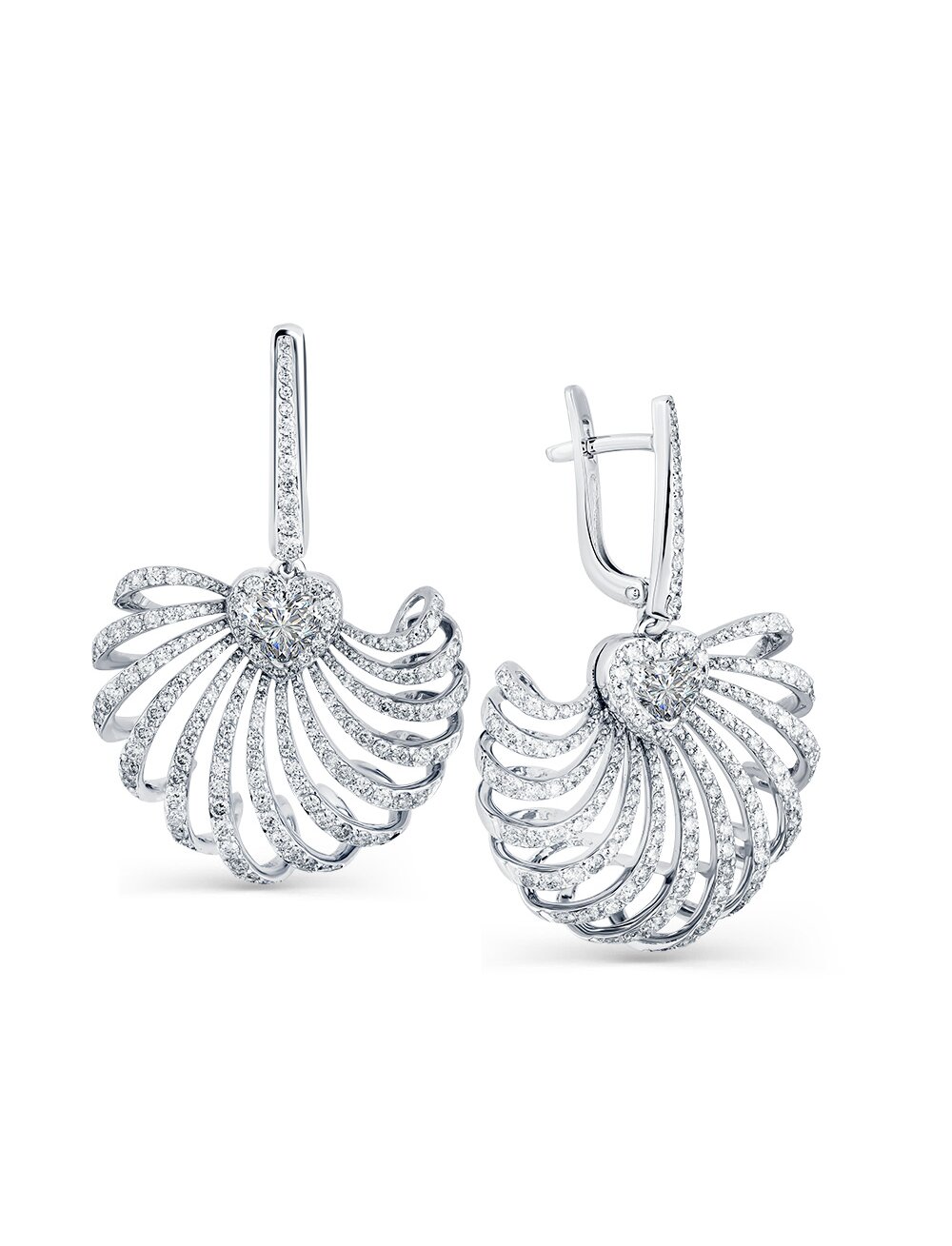 Серьги со вставкой бриллиант - это роскошное ювелирное изделие, с россыпью (паве) мелких камней, создающих эффект сплошного сияния. Предназначенно для подчеркивания статуса, демонстрации роскоши, а также символизирующее вечную любовь, преданность и важные жизненные этапы. Оно служит изысканным подарком, аксессуаром для создания стильного образа и способом инвестиции в драгоценные камни. Металл - белое золото 585 пробы. Вес - 12,66 гр.
