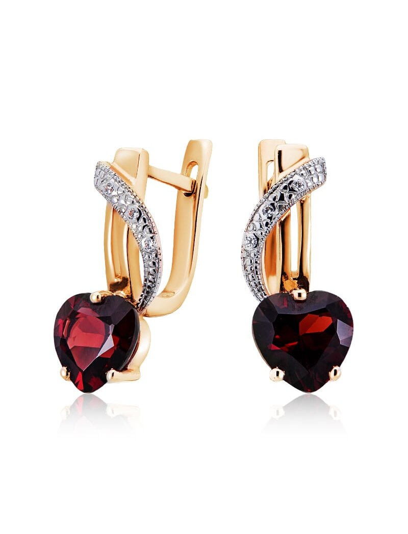 Серьги золотые "Сердце" с гранатом и фианитами - это изысканное ювелирное украшение, сочетающее классическое благородство золота, глубокий красный оттенок натурального граната и блеск прозрачных фианитов. Они символизируют любовь, страсть и самовыражение, идеально подходят для романтических подарков, особых случаев или как элегантный акцент в вечернем образе. Такие серьги часто имеют надежные замки, что обеспечивает удобство при ежедневном ношении. Материал - красное золото 585 проба. Вставк - фианит, гранат. Вес - 4.89 гр.