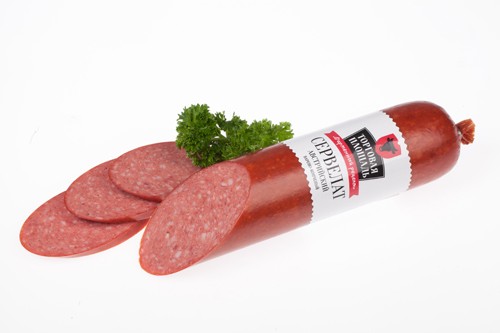 Состав: свинина, мясо куриное ручной обвалки, шпик, вода, шкурка свиная, белок соевый, нитритно-посолочная смесь, белок животный говяжий, регуляторы кислотности, клетчатка растительная, пряности (перец черный), эмульгатор, экстракты пряностей (мускатный цвет, кардамон, тмин), загустители, сахара, консерванты, антиокислители, уплотнитель, ароматизатор, усилитель вкуса и аромата, стабилизаторы, красители пищевые. Сроки годности: при t от 0°С до +6°С и относительной влажности воздуха 75-78%, продукт, упакованный с использованием вакуума - 40 суток. Вес нетто: 300 г; весовая: ≈ 500 г