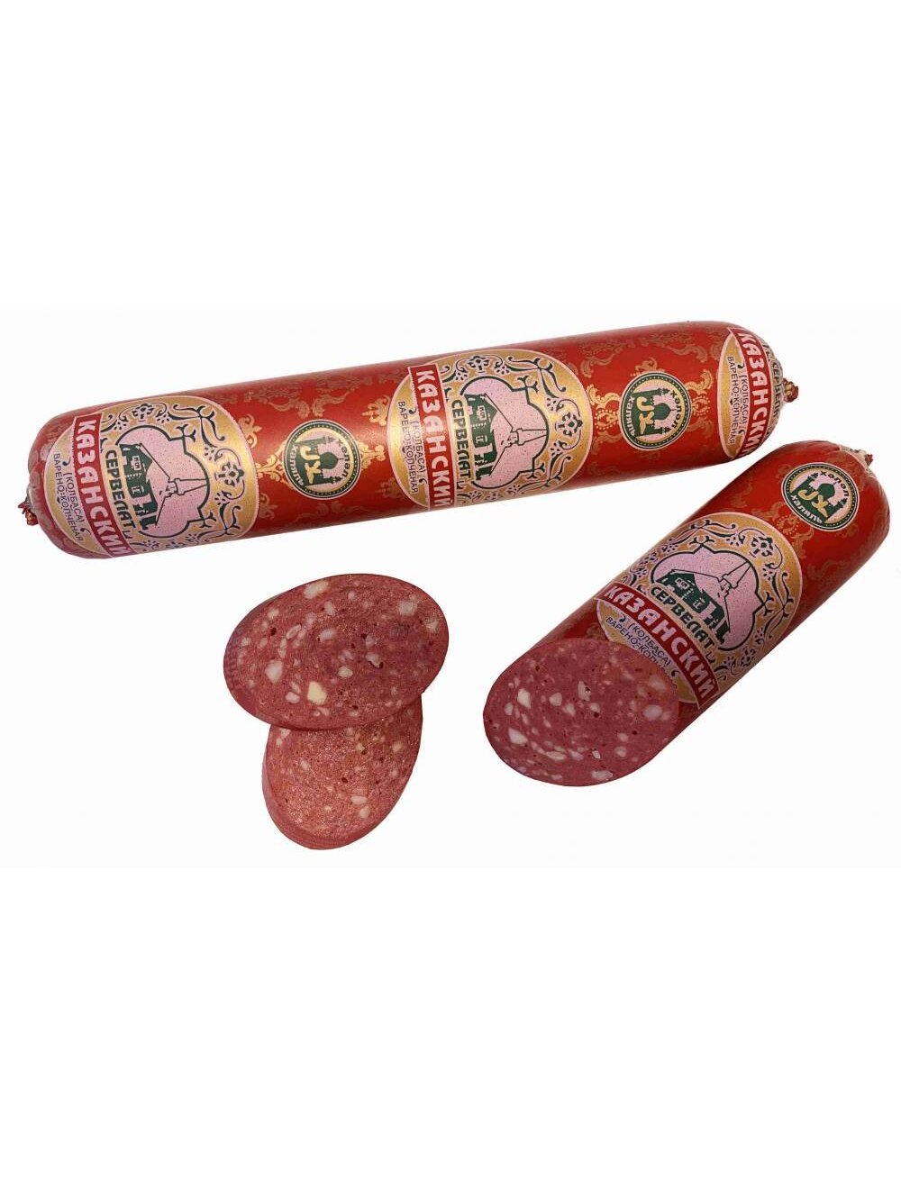 Сервелат Казанский 0,4 кг полукопченая колбаса производится из экологически чистого сырья, без ГМО и искуственных красителей и добавок. Колбасные изделия изготавливаются из подсоленного фарша с добавлением различных специй и пряностей , помещенная в оболочку под вакумом. Нашу продукцию можно приобрести оптом с доставкой до места назначения