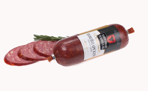 Состав: говядина, шпик свиной, сыр с м. д. жира в сухом веществе 50%, вода, нитритно-посолочная смесь, белок животный говяжий, сахара, стабилизатор, пряности (чеснок, тмин молотый, перец красный молотый), регулятор кислотности, эмульгатор, загуститель, экстракты пряностей (перец черный молотый), ароматизатор, консерванты, антиокислители, краситель пищевой. Сроки годности: при t от 0°С до +6°С и относительной влажности воздуха 75-78%, продукт, упакованный с использованием вакуума - 40 суток. Вес нетто: 380 г; весовая: ≈ 600 г
