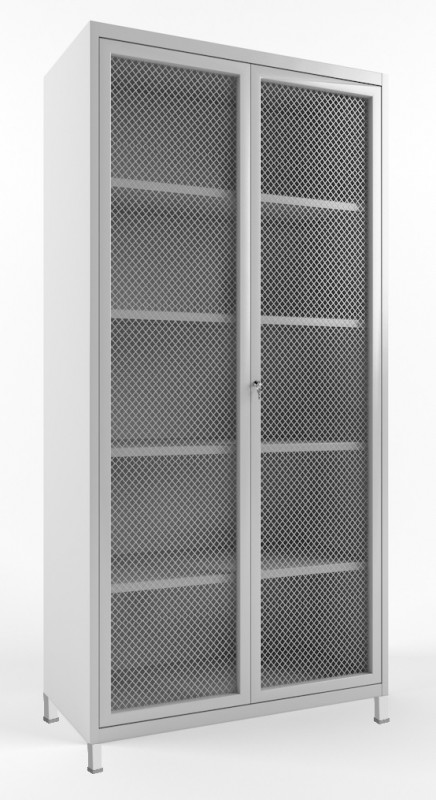 Шкаф металлический сетчатые двери Цельносварная конструкция. Каркас шкафа изготовлен из профильной трубы сечением 25х25мм Боковые и задние стенки из металла толщиной 1,5мм Двери распашные с каркасом из профильной трубы сечением 20х20мм и сеткой с ячейкой 50х50х4мм В двери установлен сувальдный закмок запирающиеся на ключ и два внутренних шпингалета сверху и снизу Полки регулируемые, съемные, с каркасом из профильной трубы сечением 20х20мм и металлическим листом Высота ребра полки 20мм Средняя высота ниши между полками не менее 380мм На ножках регулируемые опоры в диапазоне до 25мм Покрытие полимерное, светло-серого цвета RAL 7035, доступен в других цветах В комплект входит: Полки съемные - 4шт. Замок сувальдного типа - 1шт. Ключи - 4шт. Поставляется в собранном виде. Упакован в стрейчпленку. Высота: 2100мм Ширина: 960мм Глубина: 400мм Параметры упаковки: Вес: 35кг Объем: 0,81м³