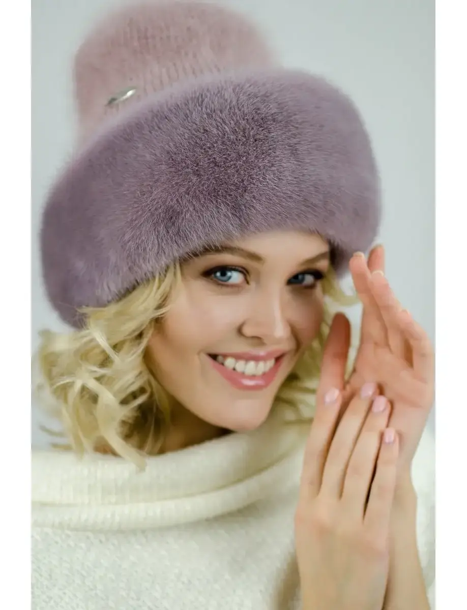 Шапка зимняя меховая - это женская шапка с натуральным мехом, шерстяная, теплая и мягкая, не колется, подойдёт на осень и зиму (до -20 градусов). Имеет форму удлиненного колпачка - лопатки, декорирована натуральным мехом норки, украшена пайетками. Выполнена на 15% из шерсти, на 15% из акрила и на 70% из ангоры. Шапочка хорошо тянется и держит форму.