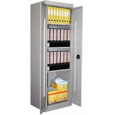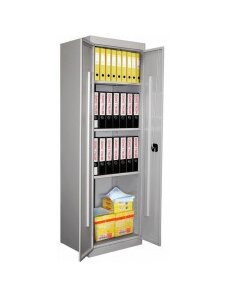 Шкаф металлический односекционный Габаритные размеры: Ширина: 850 мм Глубина: 385 мм Высота: 1850 мм Каркас разборный из листовой стали, толщиной 1.0мм, комплектуется тремя регулируемыми по высоте полками, две распашные двери с ригельным замком. Покрытие порошковое полимерное, цвет светло-серый. Максимальная нагрузка на полку - 60 кг. Поставляется в разобранном виде, сборка производится с помощью вытяжных заклепок и болтов с гайками, крепеж поставляется в комплекте. Объем: 0,2 м3 Масса: 34 кг