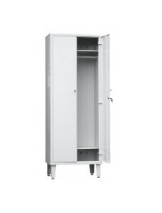 Корпус шкафа выполнен из листового проката и разделен перегородкой на 2 части. Вверху имеются полки под головные уборы и штанги – вешалки. В левой нижней части шкафа имеется полка под обувь. На задней стенке шкафа вверху и внизу вентиляционные отверстия. В передних ножках регулируемые опоры. Все металлические поверхности имеют полимерно-порошковое покрытие. Шкаф поставляется в собранном виде. Габаритные размеры: Ширина: 650 мм Глубина: 400 мм Высота: 1755 мм Объем: 0,5 м3 Масса: 48 кг