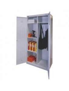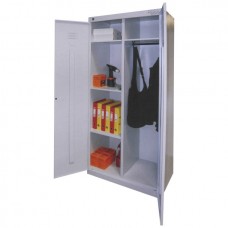 Габаритные размеры: Ширина: 600 мм Глубина: 490 мм Высота: 1850 мм Две секции, две полки для головных уборов, два замка, две перекладины, четыре крючка. Цельносварная лицевая панель, обеспечивающая абсолютную жесткость всей конструкции. Шкафы сборно-разборные, собираются при помощи заклепок и заклепочника. Поставляется в разобранном или собранном виде. Дополнительные опции: петля под навесной замок, полка под обувь, ригельный замок.