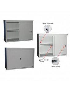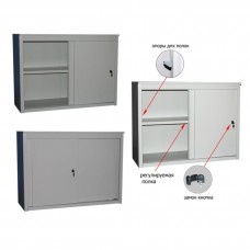 Шкаф металлический односекционный, разборный Габаритные размеры: Ширина: 1500 мм Глубина: 450 мм Высота: 880 мм Каркас разборный из листовой стали, толщиной 1.0мм, разделен горизонтальной полкой, две двери купе, на одной двери установлен мебельный замок. Покрытие порошковое полимерное, цвет светло-серый. Максимальная нагрузка на полку - 50 кг. Максимальная вместимость - 54 папки. Поставляется в разобранном виде, сборка производится с помощью вытяжных заклепок и болтов с гайками, крепеж поставляется в комплекте. Объем: 0,25 м3 Масса: 49 кг