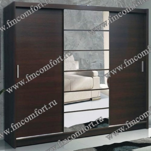 Выполнен из высококачественного ЛДСП, обработанного кромкой ПВХ и металлической верхней направляющей. Стандартное наполнение шкафа: платяное с полкой под головные уборы и штангой под вешалки. Стоимость указана для шкафа размером 1,3 х 1,9 м. Зеркала как на фото Возможные размеры шкафа: длина от 1300 до 2200 мм высота от 1900 до 2400 мм глубина от 400 до 700 мм. Можно дополнить козырьком с подсветкой, выполнить с комбинированием цветов. Производитель: Мебельная Фабрика Комфорт