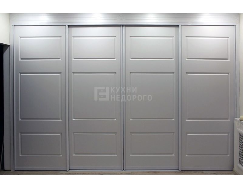 Цвет: Серый Стиль: современный Ширина: 320 см. Назначение: в комнату Форма: стандартный Отделка: без зеркала Особенности: встроенный, во всю стену Количество дверей: 4 двери